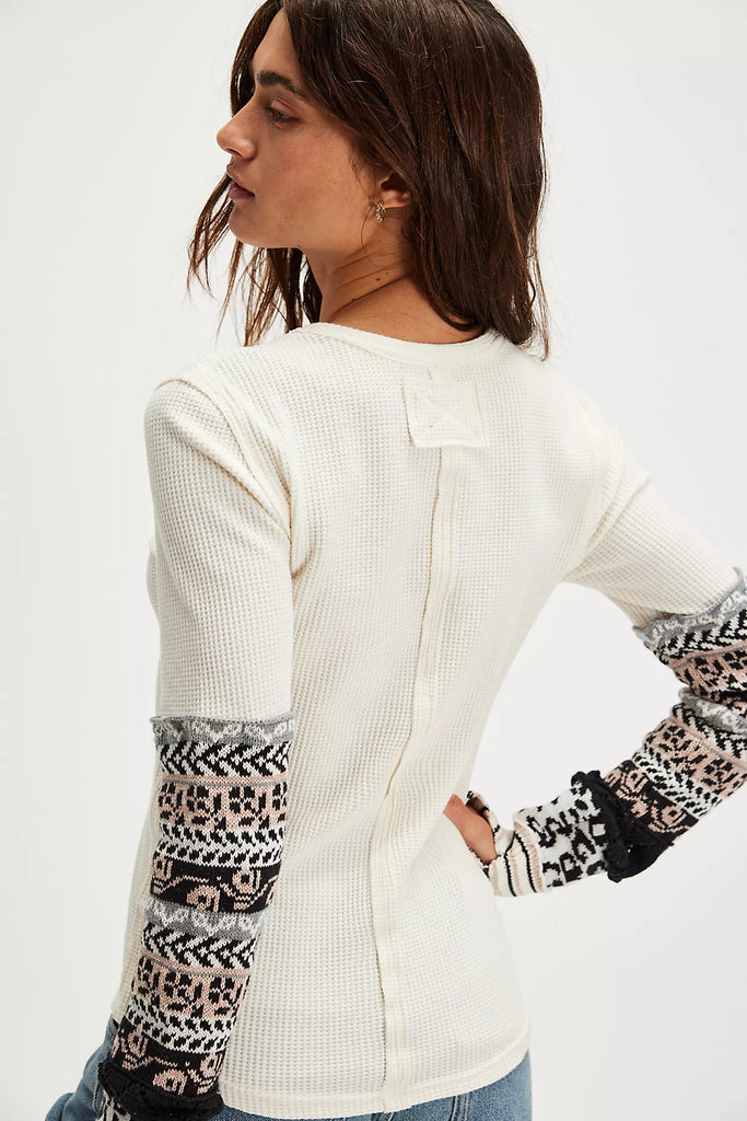 Cuffing season is finally here. This top from our We The Free collection features a relaxed fit and long-sleeve style with exaggerated printed cuffs and thumbhole detailing.